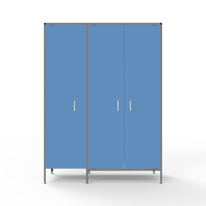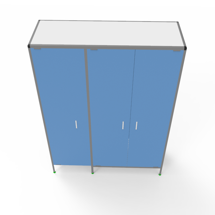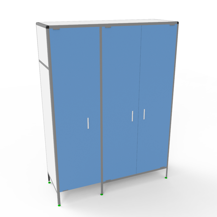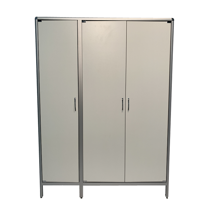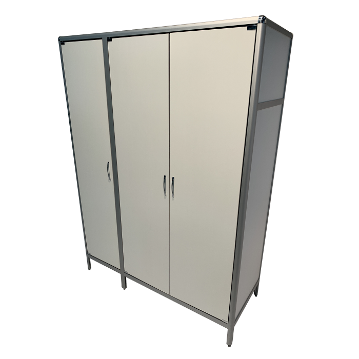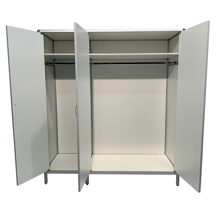 Шкаф MED 20.005al оснащен штангой для тремпелей, полкой для головных уборов, дверцами и регулируемыми по высоте ножками, что обеспечивает оптимальные условия для хранения и организации одежды. Каркас из алюминиевого профиля обеспечивает прочность, устойчивость и долговечность конструкции, а порошковое покрытие каркаса придает шкафу эстетичный и современный внешний вид.