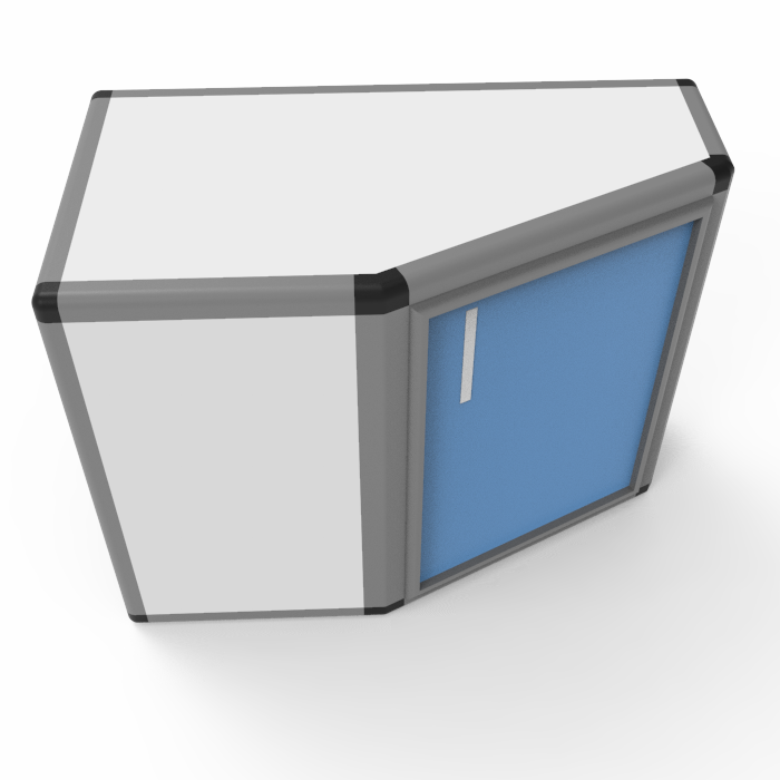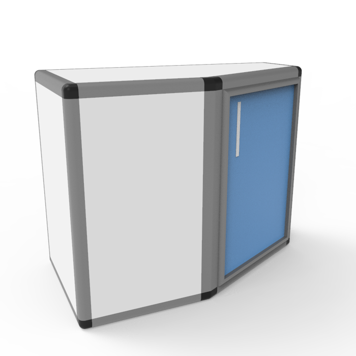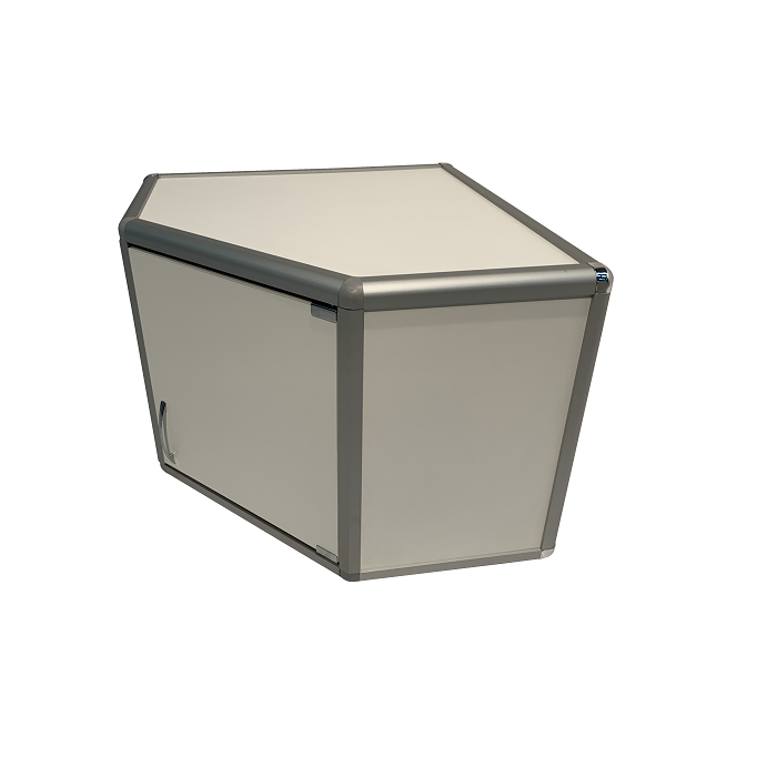 - Шкаф устанавливается на стене в углу, что позволяет эффективно использовать пространство и не занимать много места в лаборатории.