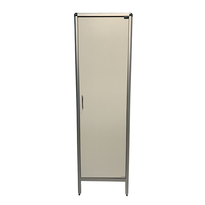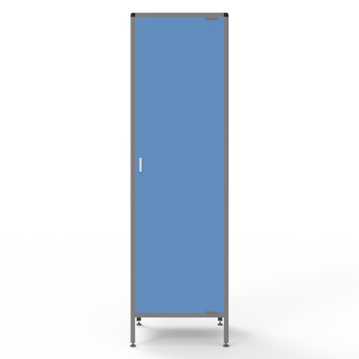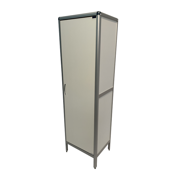 MED 17.001al оснащен полками, дверцей и регулируемыми по высоте ножками, что позволяет эффективно организовать хранение и быстро найти необходимые предметы. Каркас из алюминиевого профиля обеспечивает прочность, устойчивость и долговечность конструкции, гарантируя долгий срок службы шкафа.