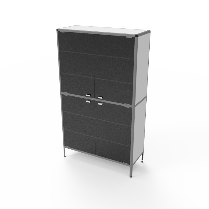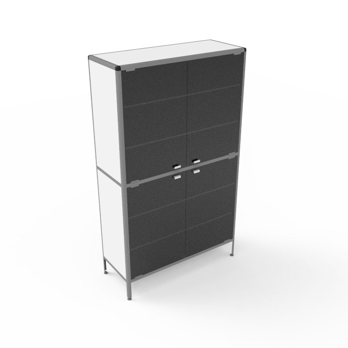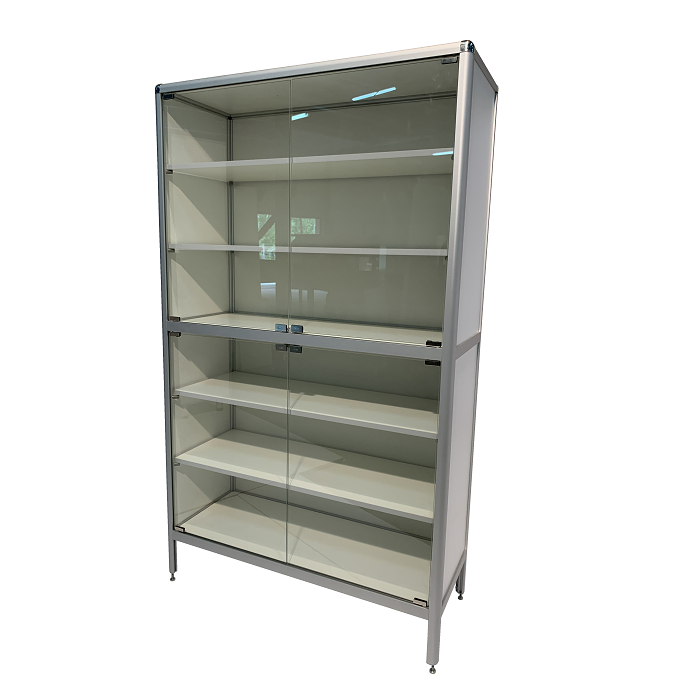 Сочетание вместительности и компактных размеров делает этот шкаф идеальным выбором для мест, где требуется оптимизация рабочего пространства. Каркас из алюминиевого профиля обеспечивает прочность, устойчивость и долговечность конструкции, при этом покрытие порошковой краской придает шкафу дополнительную защиту и стильный внешний вид.