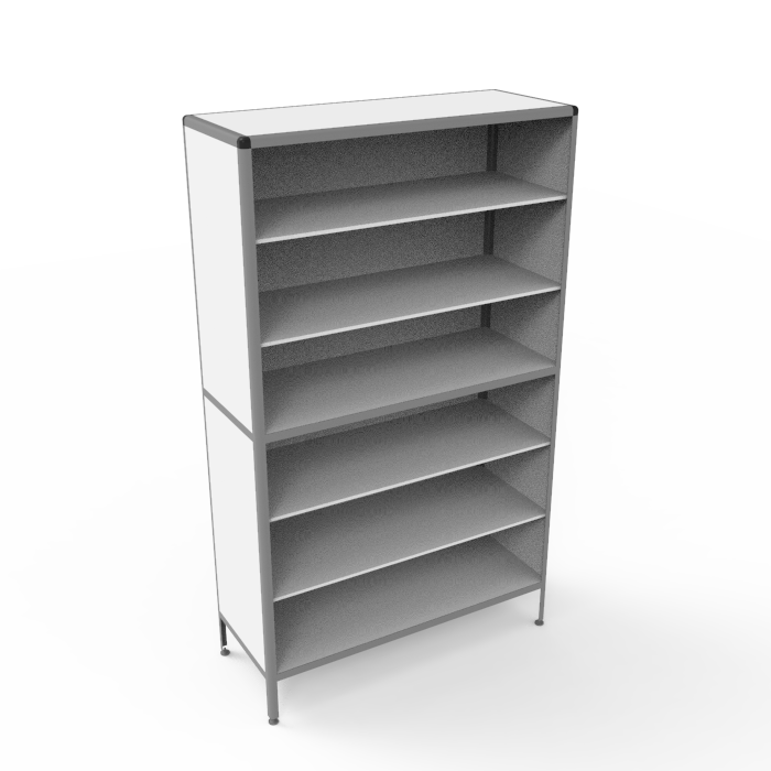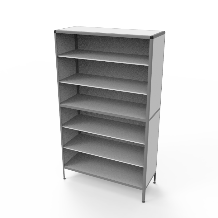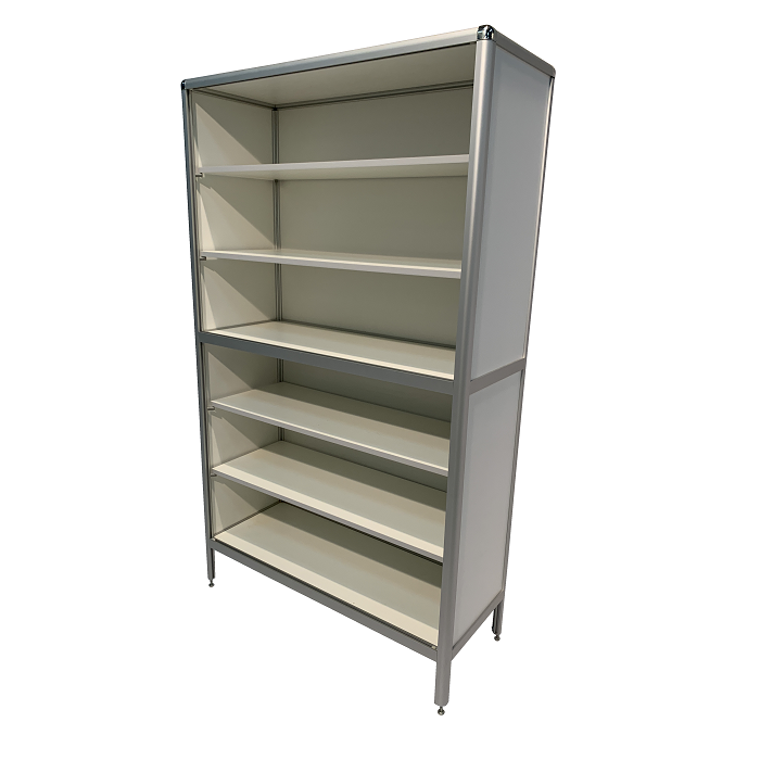 Каркас из алюминиевого профиля обеспечивает прочность, устойчивость и надежность всей конструкции, при этом порошковое покрытие каркаса придает ему стильный внешний вид и сохраняет его от внешних воздействий. Регулируемые по высоте ножки позволяют установить шкаф на любых поверхностях, обеспечивая стабильность и комфорт в использовании.