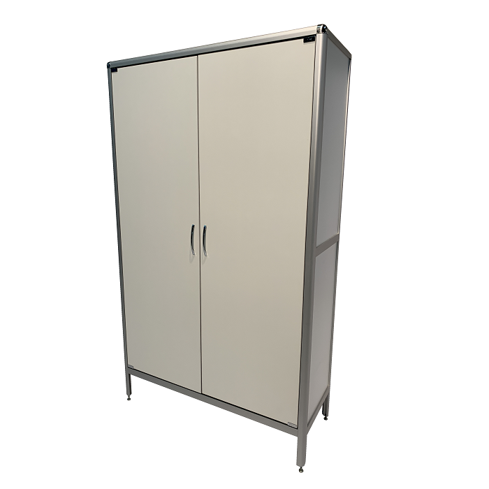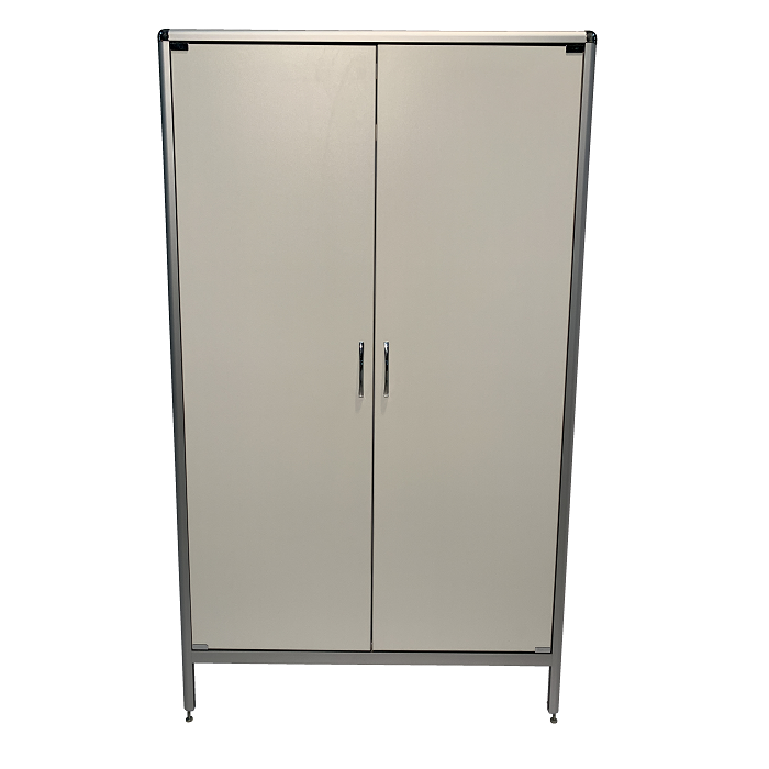 Шкаф MED 17.012al отличается вместительностью при минимальном занимаемом пространстве, что позволяет оптимально использовать место. Каркас из алюминиевого профиля обеспечивает прочность, устойчивость и долговечность всей конструкции. Порошковое покрытие алюминиевого профиля придает шкафу современный вид и защищает его от внешних воздействий.