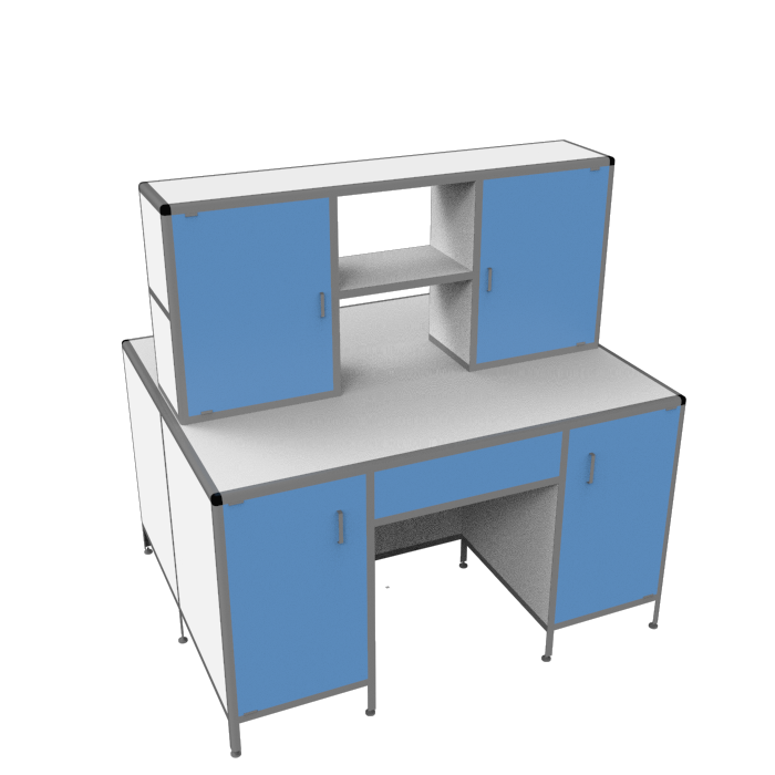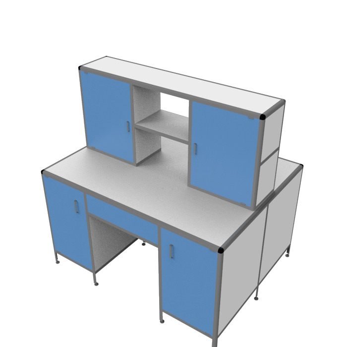 Стол лабораторный островной MED 11.003al - это отличное решение для обустройства двух рабочих мест в лабораториях и медицинских учреждениях, позволяя эффективно использовать пространство помещения. Каждое рабочее место этого стола оснащено удобной тумбой с распашной дверкой и внутренней полкой для удобного хранения необходимых материалов. Сквозные отделения с дверками облегчают доступ к хранимым предметам.