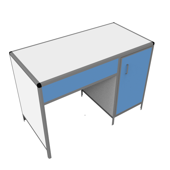 Стол оснащен удобной тумбой с распашной дверкой и полкой внутри, расположенной справа, что обеспечивает дополнительное пространство для хранения необходимых материалов и оборудования. Устойчивость и долговечность стола обеспечиваются прочными материалами и качественной сборкой.