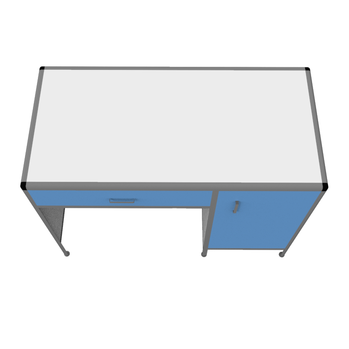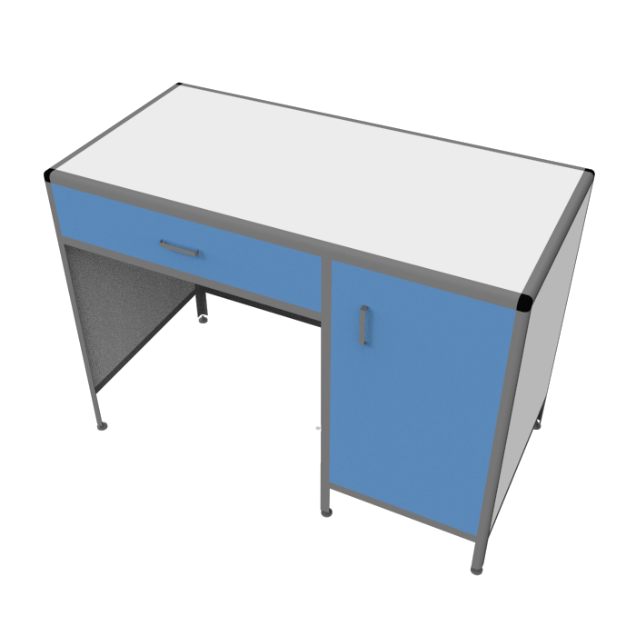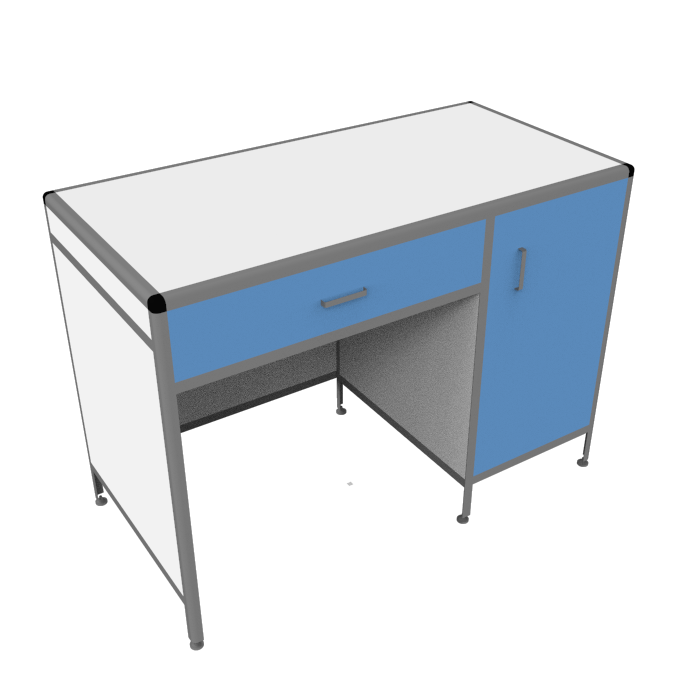 Столешница из ЛДСП белого цвета с кромкой светло-серого оттенка выглядит стильно и современно. Размеры рабочей поверхности 1200х600 мм и равномерно распределенная нагрузка до 25 кг делают этот стол идеальным для выполнения различных лабораторных задач.