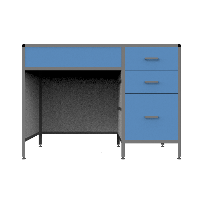 Столешница с толщиной 16 мм и размерами 1200х600 мм обладает возможностью равномерно распределять нагрузку до 25 кг. Боковая тумба с тремя выдвижными ящиками предоставляет удобное пространство для хранения различных мелочей и документов. Внутренние размеры ящиков и тумбы обеспечивают оптимальное использование пространства.