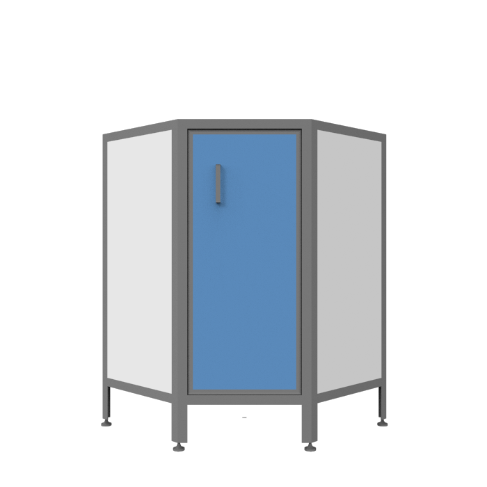 Каркас стола изготовлен из прочного алюминиевого профиля, который покрыт листами ЛДСП толщиной 8 мм для дополнительной прочности и долговечности конструкции. Столешница выполнена из ЛДСП толщиной 16 мм и предусматривает врезанную мойку для удобства использования. Отделение под столешницей оснащено удобной дверкой, обеспечивающей возможность хранения необходимых материалов и оборудования.