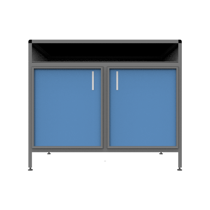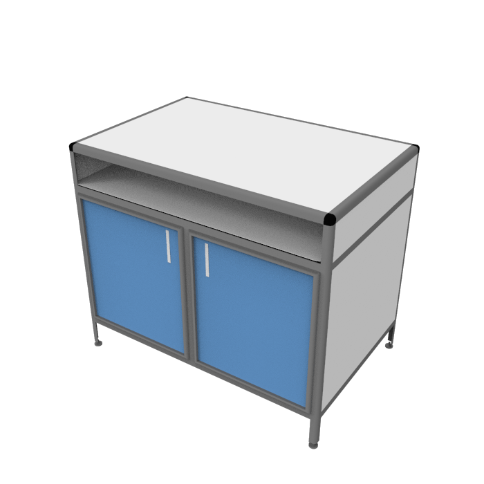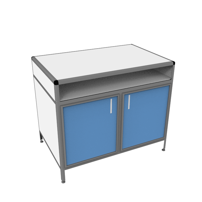 Ниша под столешницей вместительна и прекрасно подходит для хранения больших предметов, а две тумбы с распашными дверками и полками внутри обеспечивают дополнительное пространство для организации материалов. Размеры ниши составляют 940х540х139 мм, а размеры внутренних полок – 463х545 мм. Равномерно распределенная нагрузка на нишу, полки и дно тумбы составляет до 10 кг.