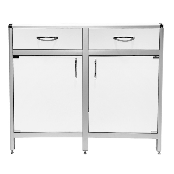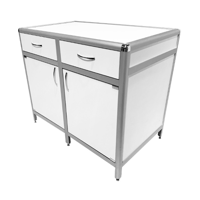 Стол-тумба MED 12.006al оснащена двумя выдвижными ящиками с внутренним размером 434х70х406 мм и двумя внутренними полками размером 463х545 мм, способными выдерживать равномерно распределенную нагрузку до 10 кг. Регулируемые винтовые опоры на ножках обеспечивают возможность компенсации неровностей напольного покрытия и обеспечивают устойчивость и удобство в использовании.