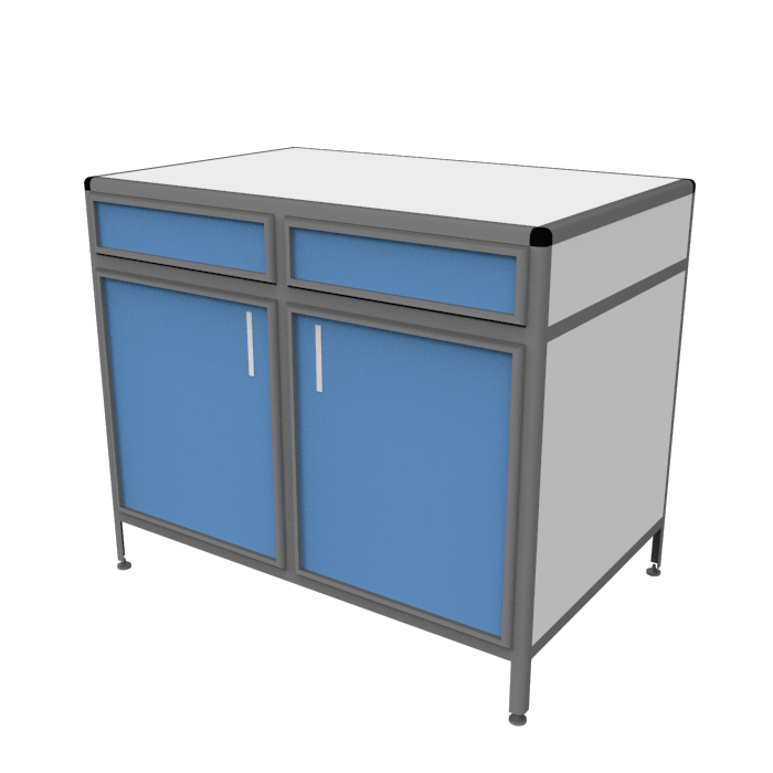 Стол-тумба лабораторная MED 12.006al - это идеальное решение для хранения разнообразных предметов, инвентаря и приборов в лабораториях или других медицинских учреждениях. Этот функциональный стол обладает двумя выдвижными ящиками и двумя тумбами с распашными дверками и полками внутри, что обеспечивает удобную организацию пространства хранения.