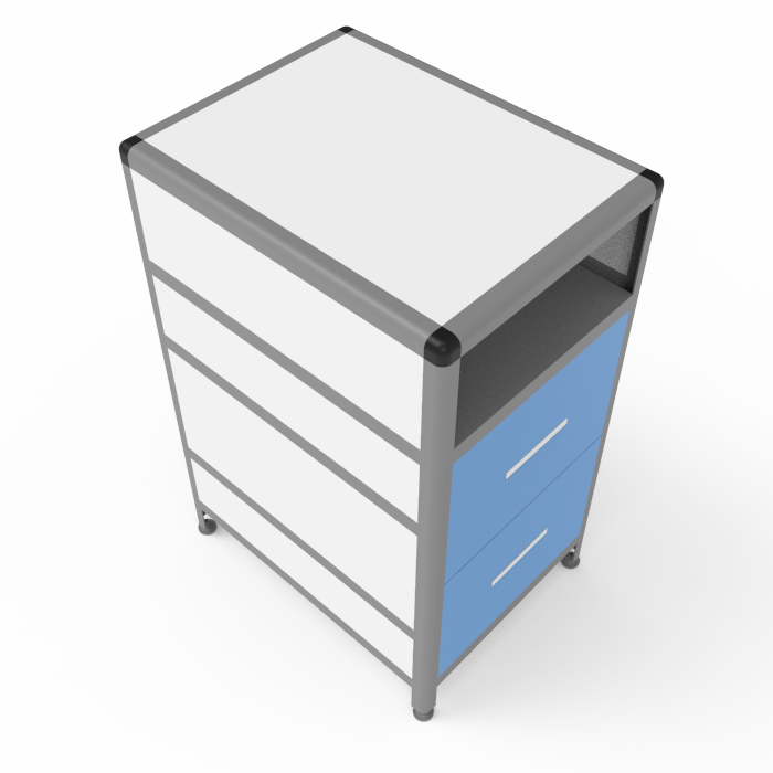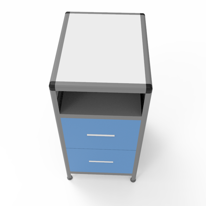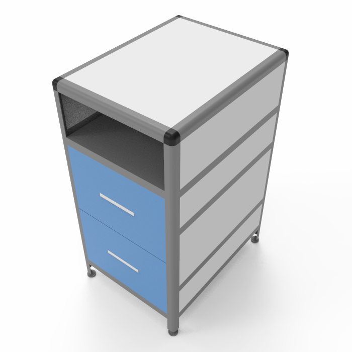 Тумба MED 16.007al оборудована двумя выдвижными ящиками размером 384х70х296 мм каждый, а также вместительной нишей размерами 340х460х172 мм, способной выдерживать равномерно распределенную нагрузку до 10 кг. Оптимальные параметры высоты рабочей поверхности от пола обеспечивают комфортное использование для пользователей разных ростов.