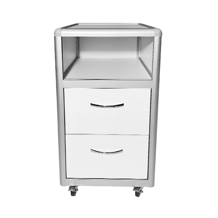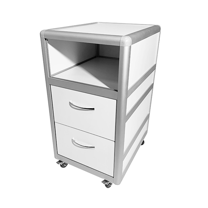 - Мобильность: Тумба установлена на обрезиненные металлические колесные опоры диаметром 50 мм, что обеспечивает легкость перемещения по помещению. Два из колес оснащены стопорами, которые гарантируют стабильность и неподвижность, когда это необходимо.