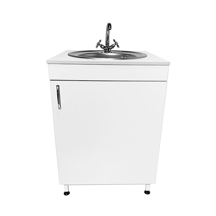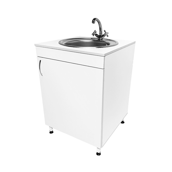 Каркас мойки выполнен из ЛДСП, что придает конструкции легкость и прочность, а чаша из нержавеющей стали обеспечивает долговечность и гигиеничность использования.