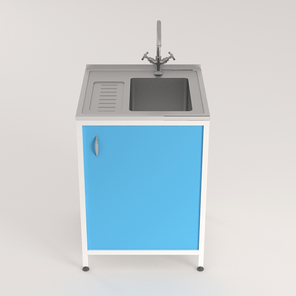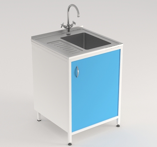 Каркас мойки выполнен из стального профиля, покрытого порошковой краской, что обеспечивает прочность и долговечность конструкции. Обшивка выполнена из ЛДСП, а чаша из нержавеющей стали, что делает эту мойку стойкой к воздействию химических веществ и легкой в уходе.