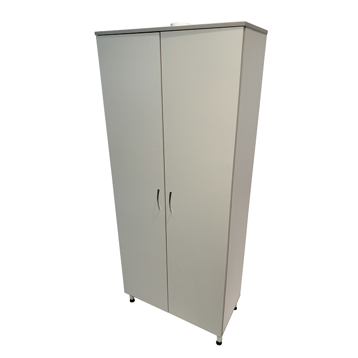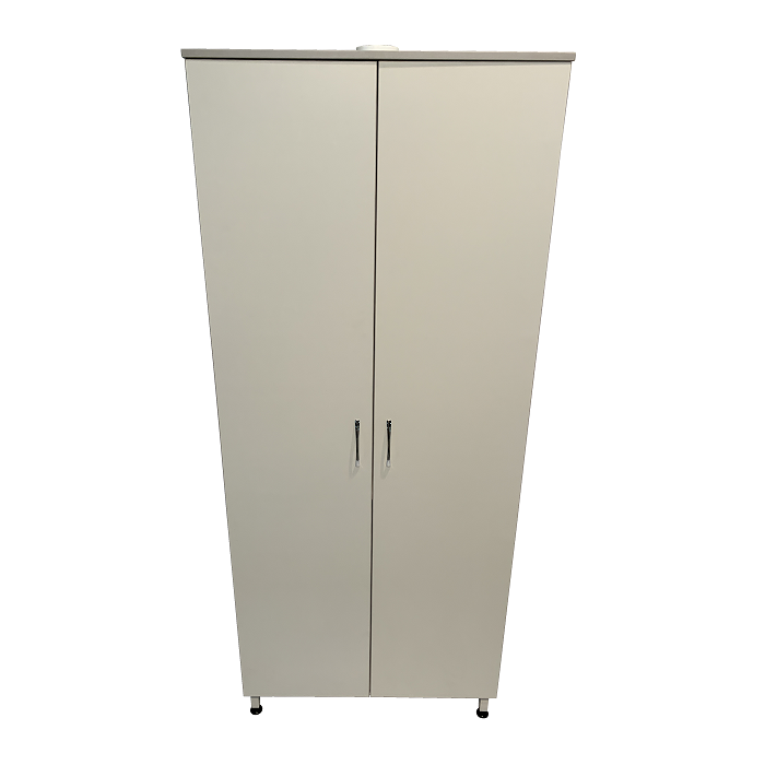 Шкаф оборудован полками и дверцами, что упрощает доступ к необходимым материалам, а также регулируемыми по высоте ножками, позволяющими установить его на различные поверхности. Каркас из стального профиля обеспечивает жесткость, устойчивость и прочность конструкции, а порошковое покрытие его защищает от воздействия внешних факторов.