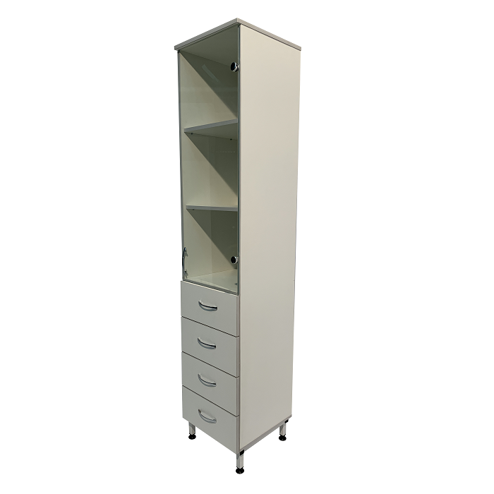 - Шкаф доступен в классическом белом цвете, добавляя свежесть и стиль в интерьер лаборатории.
