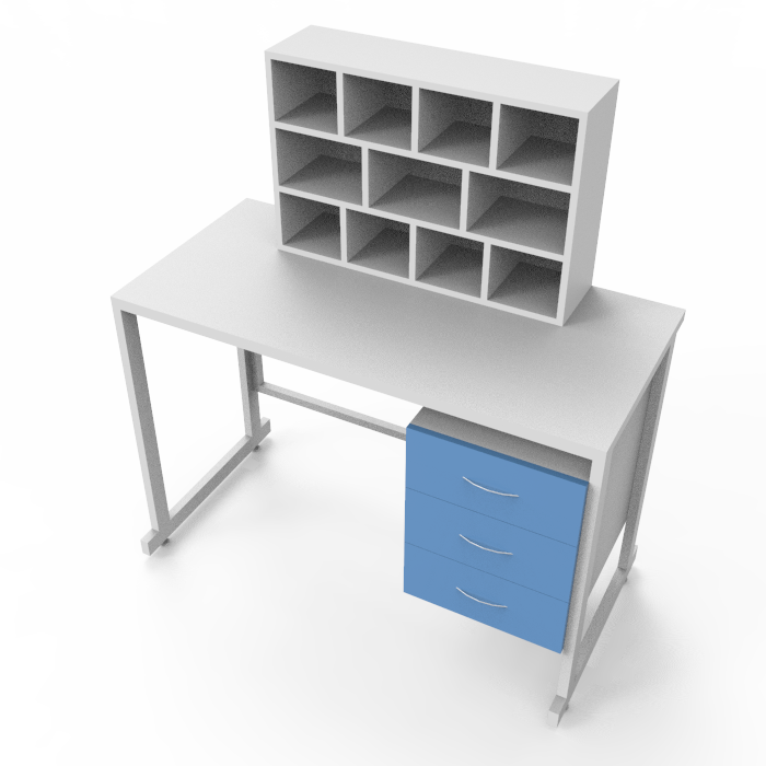 Надстройка стола с 11 ячейками обеспечивает возможность удобного и организованного размещения и исследования образцов. Каркас конструкции обеспечивает прочность, устойчивость и долговечность стола. Столешница выполнена из качественного ЛДСП, а каркас из надежного стального профиля, покрытого порошковой краской для долговечности и защиты от внешних воздействий.