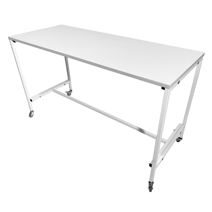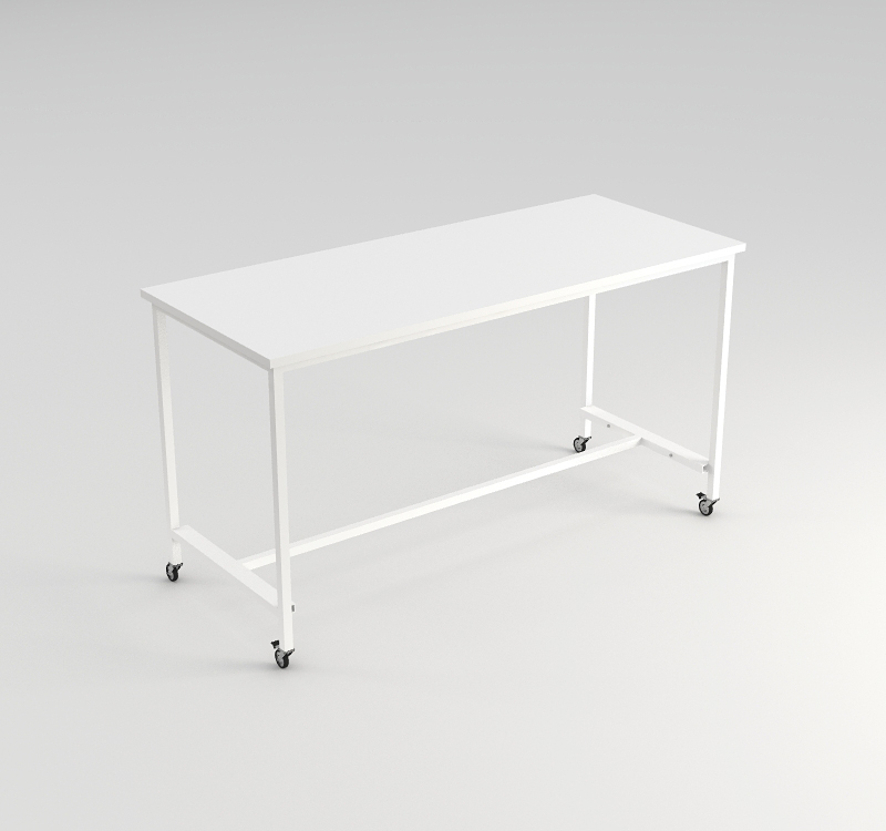- Стол установлен на четырех колесных опорах диаметром 50 мм, при этом два из них оснащены стопорами для замедления и фиксации стола в нужном месте.