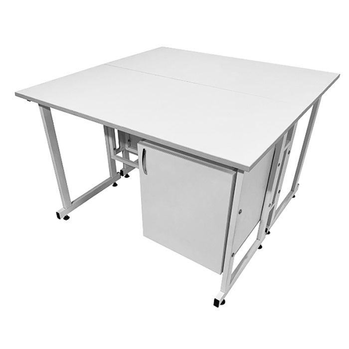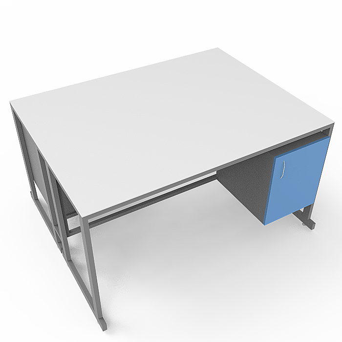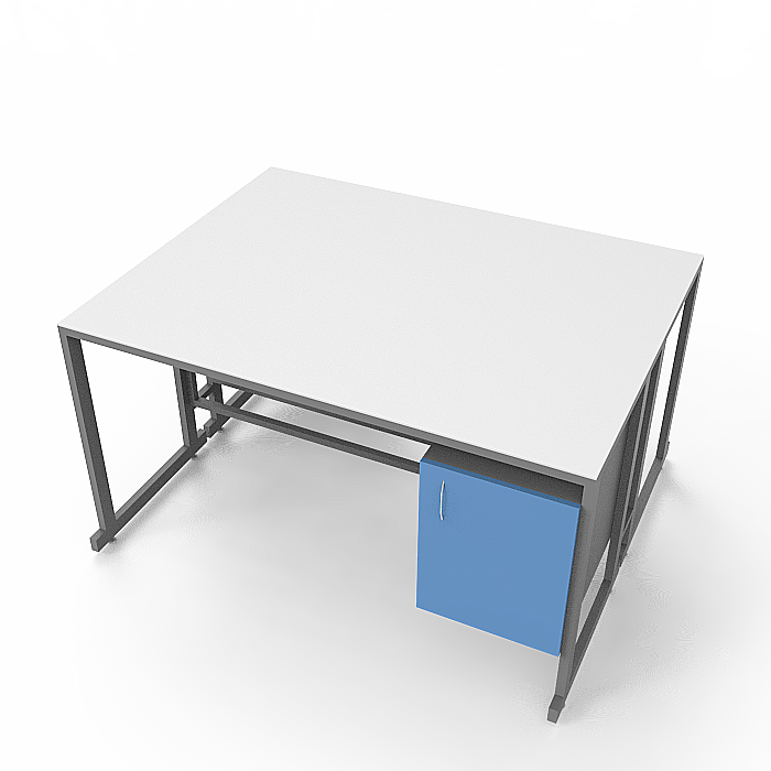 - Рабочая поверхность: Общий размер рабочей поверхности стола составляет 1200х1200 мм, она состоит из двух столешниц размером 1200х600 мм каждая. Рабочая поверхность выполнена из ЛДСП толщиной 22 мм, обеспечивая прочность и стабильность при нагрузке до 60 кг на каждую столешницу.