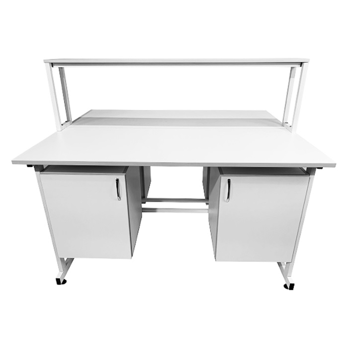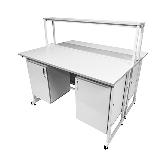 - Надстройка с полкой: Стол комплектуется надстройкой размером 1500х250х400 мм, выполненной из ЛДСП толщиной 16 мм. Полка надстройки также может выдерживать нагрузку до 10 кг, предоставляя дополнительное пространство для хранения лабораторных принадлежностей и документов.