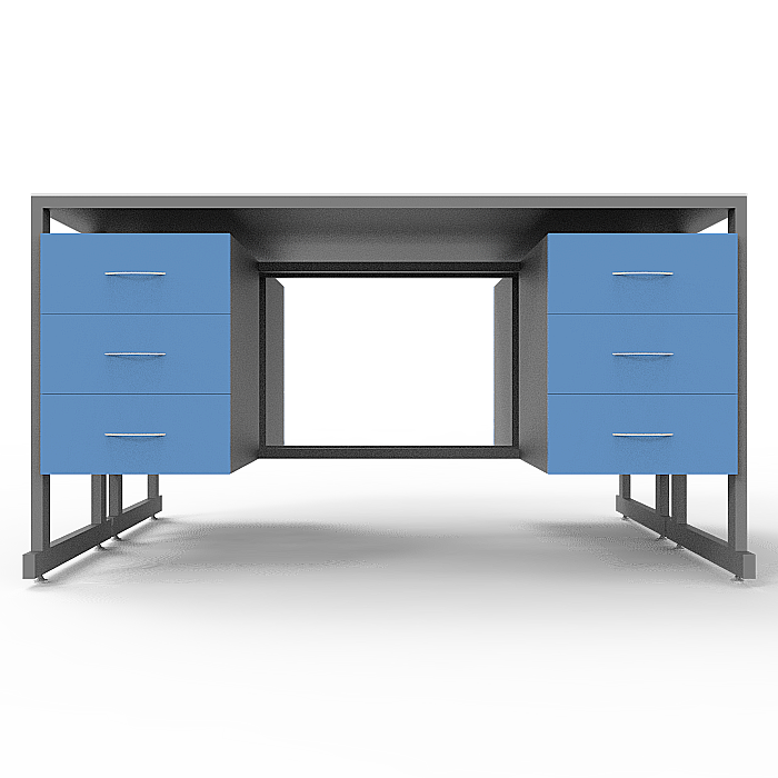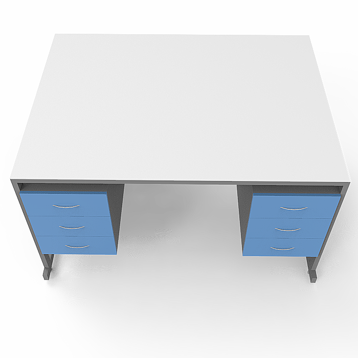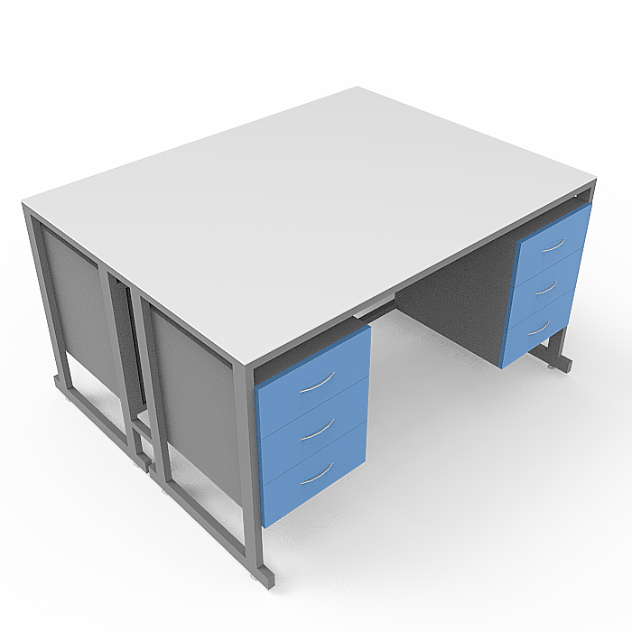 Каждое рабочее место оборудовано двумя подвесными тумбами, в каждой из которых находится три выдвижных ящика. Это обеспечивает удобство хранения необходимых предметов и материалов.