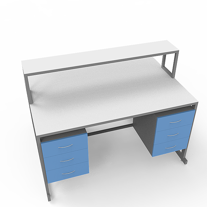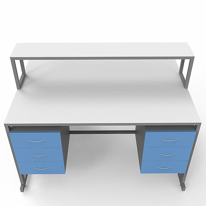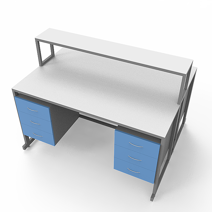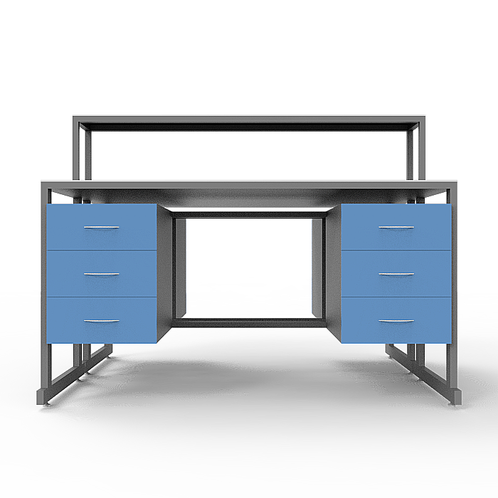 - Тумбы с ящиками: Каждое рабочее место оснащено двумя подвесными тумбами, в общей сложности четыре тумбы. Тумбы выполнены из ЛДСП толщиной 16 мм и имеют внутренние размеры 368х444х428 мм. В каждой тумбе расположено три выдвижных ящика с внутренними размерами 368х100х310 мм, что позволяет удобно хранить различные лабораторные принадлежности и инструменты. Каждый ящик выдерживает равномерно распределенную нагрузку до 10 кг, что гарантирует их надежность и долговечность. Хромированные ручки-скобы длиной 96 мм (в комплекте 12 шт.) добавляют элегантности и удобства при использовании.