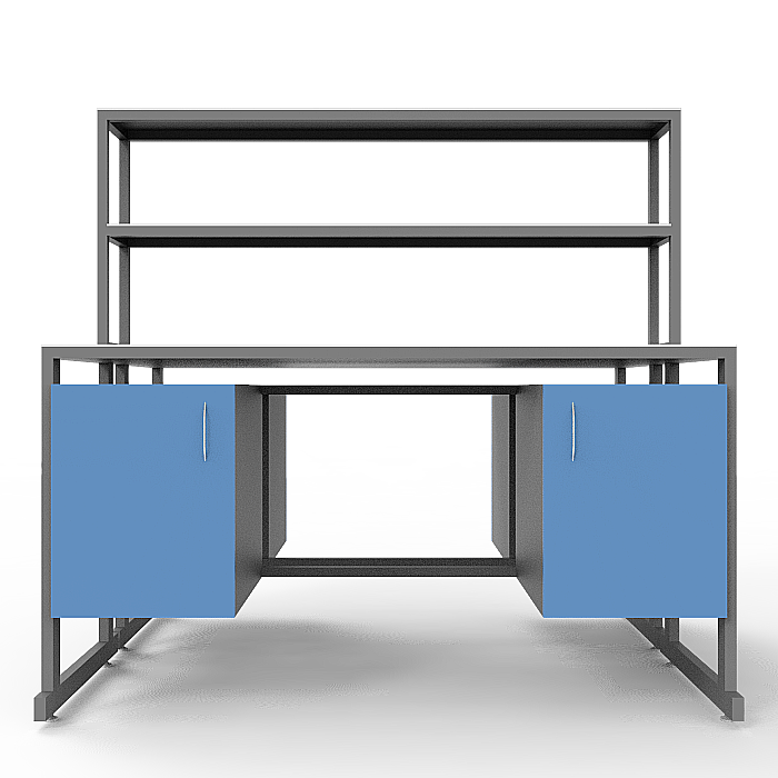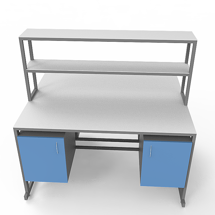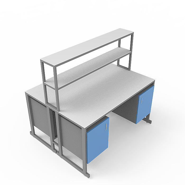 - Надстройка: Посередине столешницы установлена надстройка с двумя полками, изготовленными из ЛДСП толщиной 16 мм. Размер надстройки составляет 1500x250x750 мм, каждая полка может выдерживать равномерно распределённую нагрузку до 10 кг. Это позволяет удобно разместить дополнительное оборудование и материалы прямо над рабочей поверхностью.