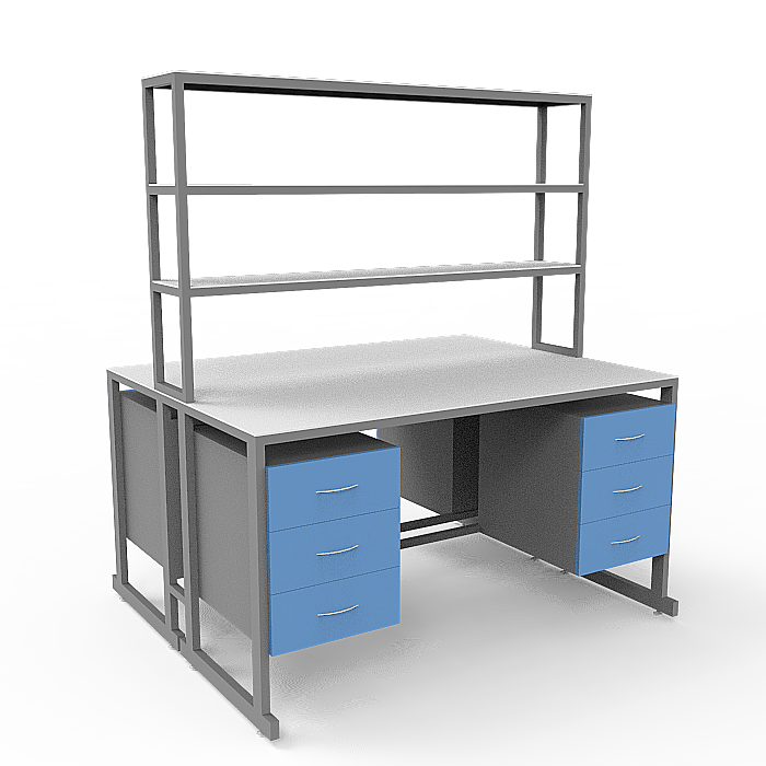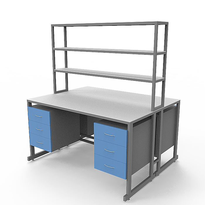 - Количество и конструкция: В комплектацию входят четыре подвесные тумбы, каждая из которых оснащена тремя выдвижными ящиками. Это позволяет удобно организовать хранение инструментов, реактивов и других рабочих материалов.
