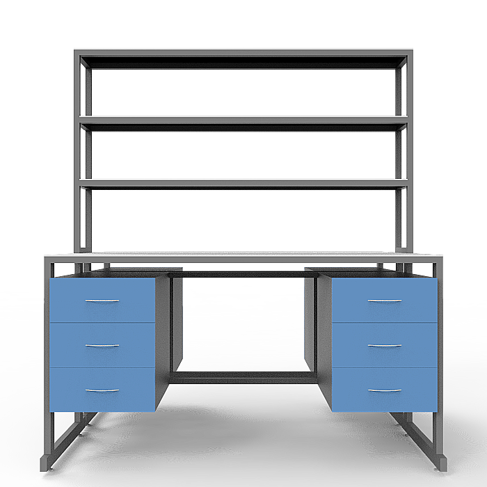 - Структура: Посередине столешницы установлена надстройка, состоящая из трех полок, что значительно расширяет возможности хранения и позволяет удобно организовать рабочие материалы и инструменты.
