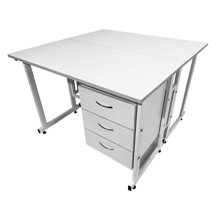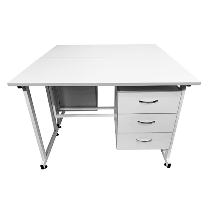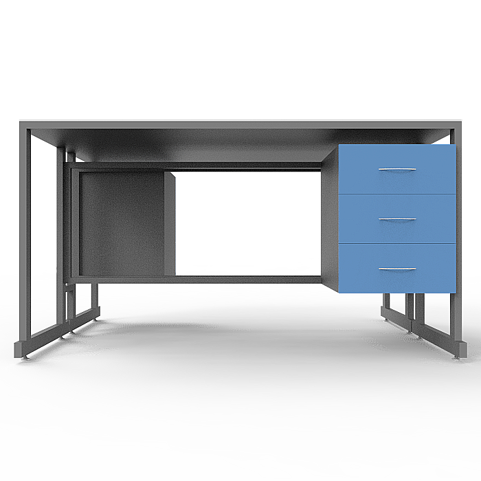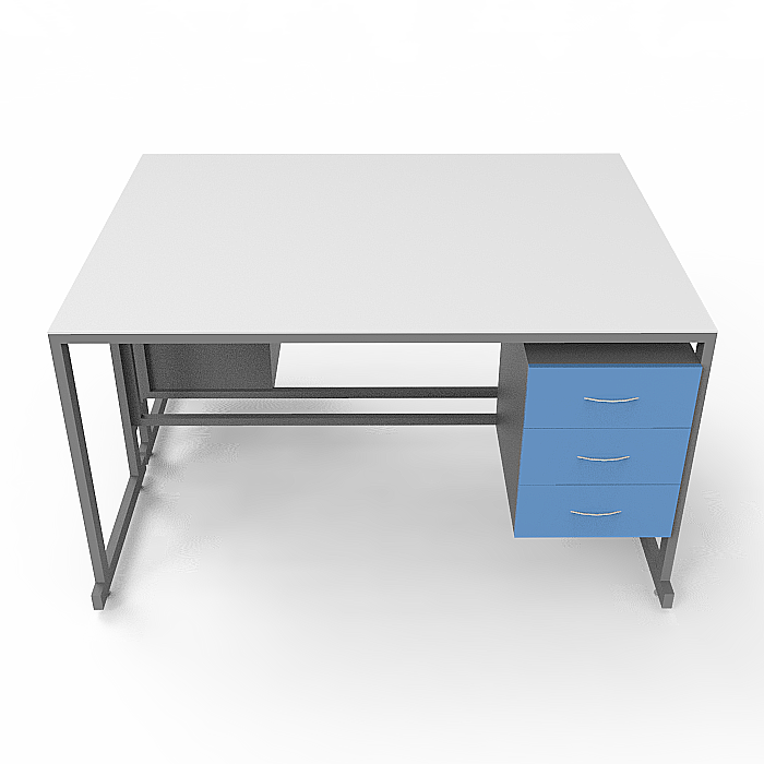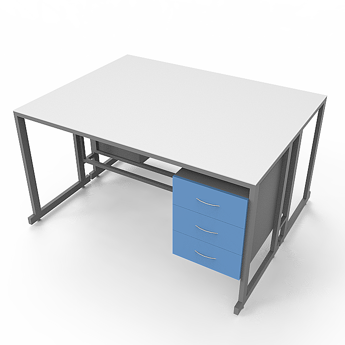 Каждое рабочее место на этом столе оснащено удобной подвесной тумбой с тремя выдвижными ящиками, что обеспечивает удобное хранение необходимых материалов и инструментов.