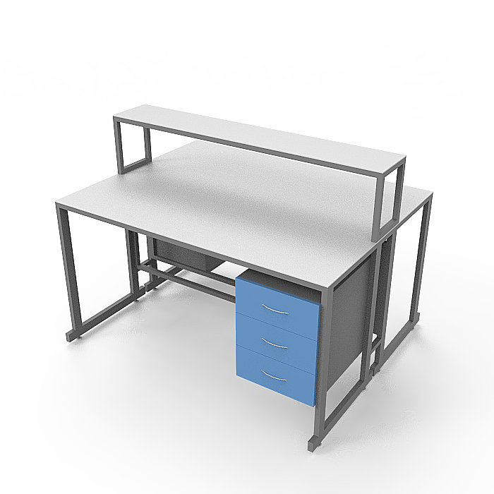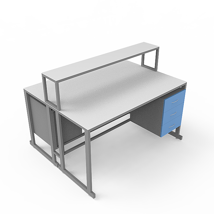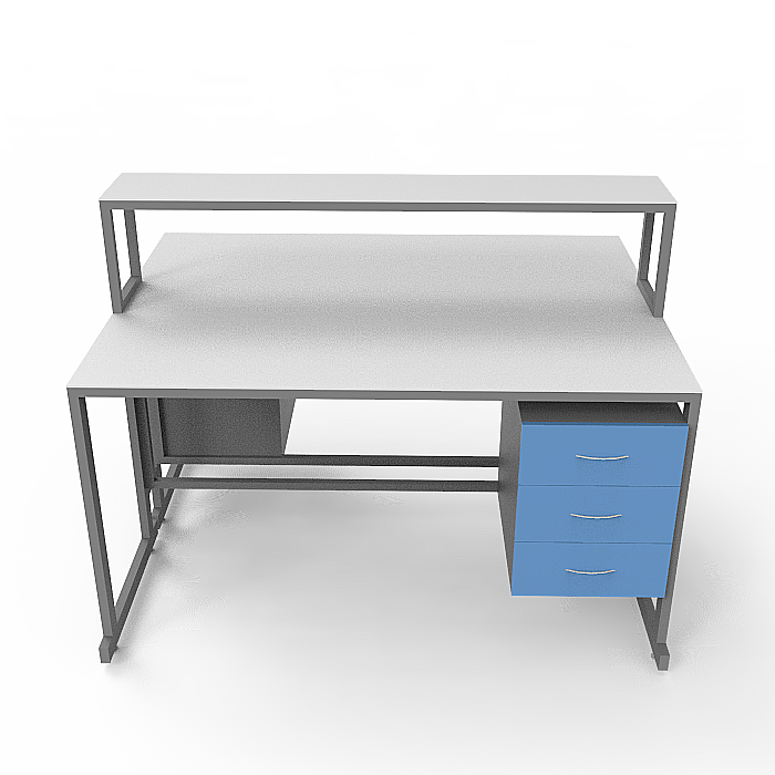 - Надстройка с полкой: Посередине рабочей поверхности установлена надстройка размером 1200х250х400 мм, изготовленная из ЛДСП толщиной 16 мм. Полка надстройки также способна выдержать равномерно распределенную нагрузку до 10 кг, что позволяет удобно размещать необходимые материалы и инструменты.