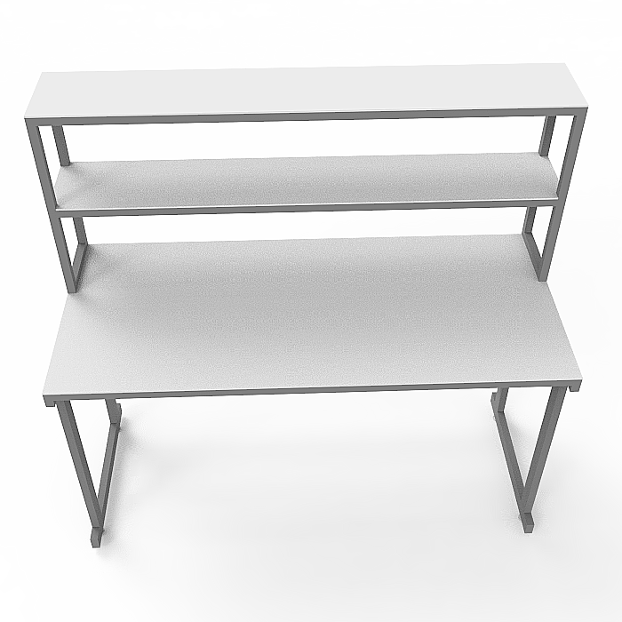 - Надстройка стола оснащена двумя полками из ЛДСП толщиной 16 мм, способными выдерживать равномерно распределенную нагрузку до 10 кг на каждой полке. Размеры надстройки обеспечивают удобство использования и организацию рабочего пространства.
