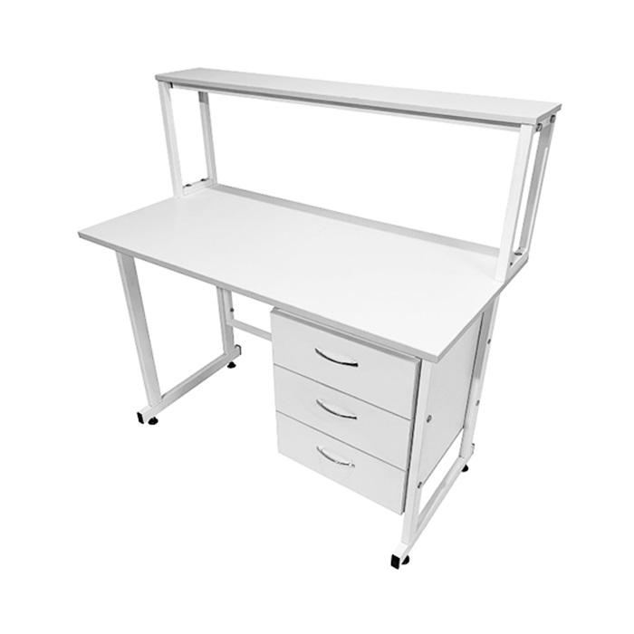 - Столешница изготовлена из качественного белого ЛДСП толщиной 22 мм с рабочей поверхностью размером 1200х600 мм, способной выдерживать равномерно распределенную нагрузку до 60 кг.