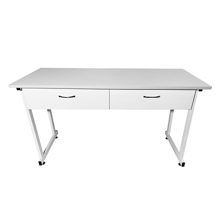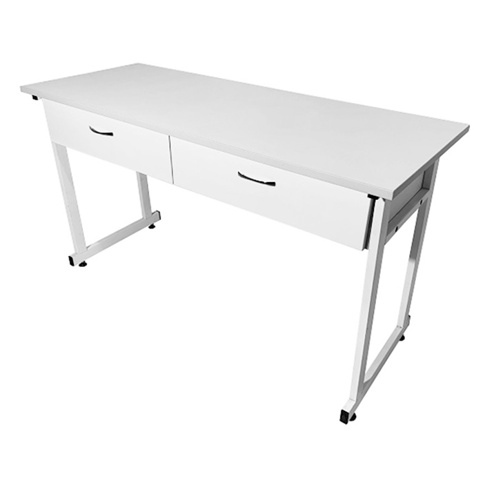- Прочный каркас из стального профиля 25х50 мм, покрытый порошковой краской белого цвета, обеспечивает надежную поддержку и долговечность стола.