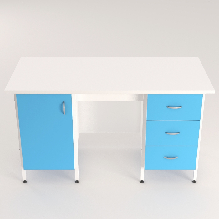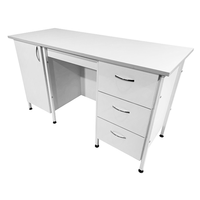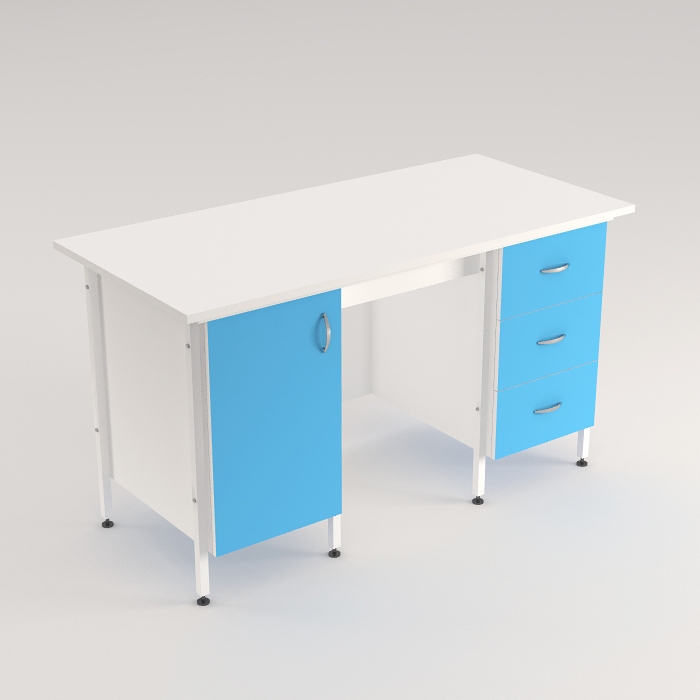 - Наличие тумб с выдвижными ящиками и распашной дверкой облегчает хранение материалов и оборудования, а размер полки в тумбе позволяет компактно разместить необходимые предметы.