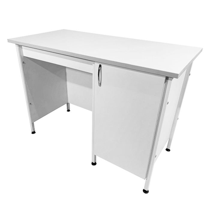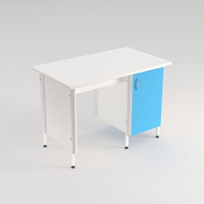 - Столешница из ЛДСП белого цвета с кромкой светло-серого оттенка имеет увеличенную толщину для дополнительной прочности. Размеры рабочей поверхности 1200х600 мм позволяют комфортно разместить необходимое оборудование и материалы.