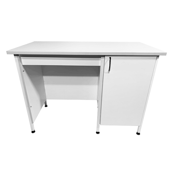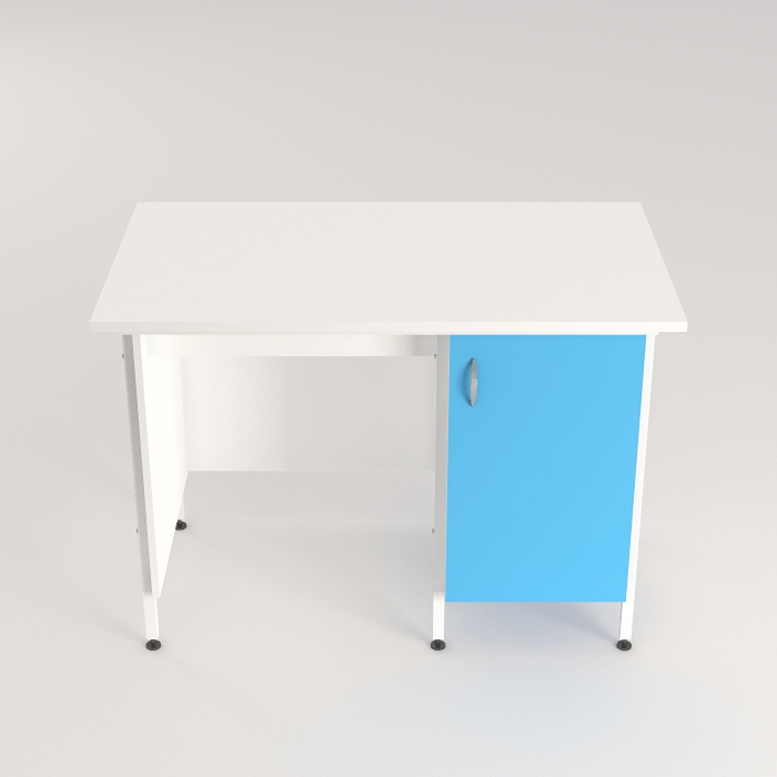 - Тумба с распашной дверкой и полкой внутри обеспечивает удобное хранение документов и инструментов, а перемычка под столешницей придает столу дополнительную устойчивость.