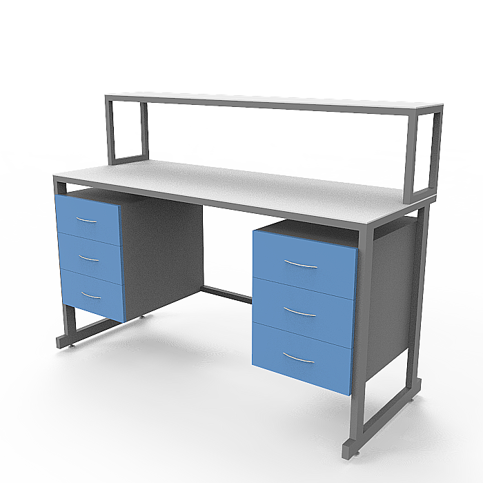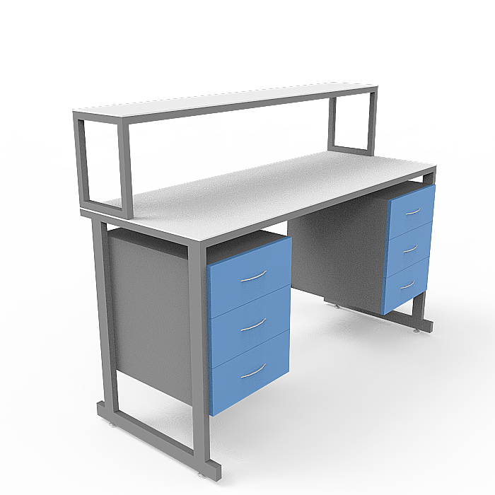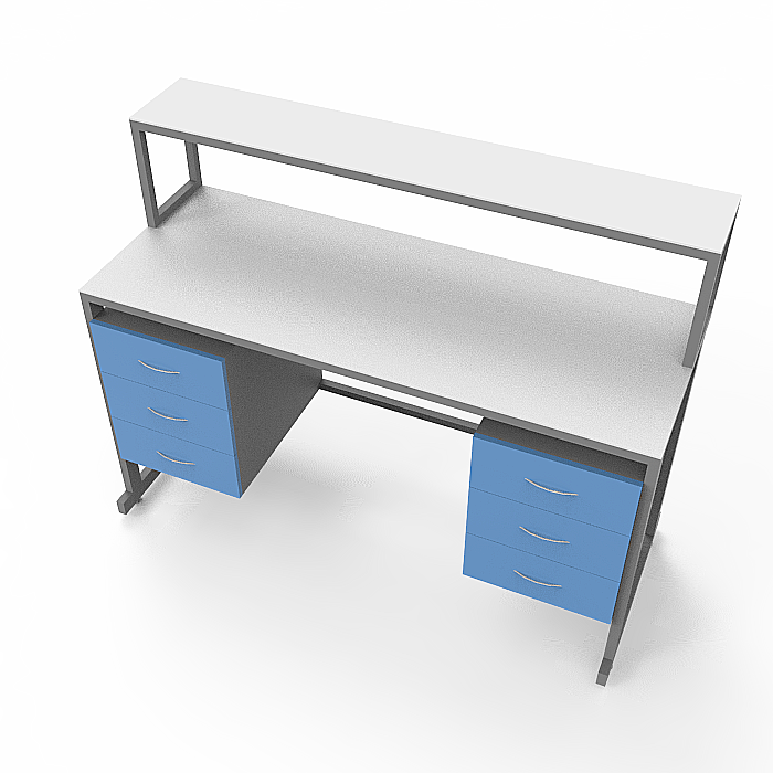 Столешница из керамогранита отличается высокой степенью устойчивости к агрессивным химическим веществам, резким перепадам температур и механическим повреждениям, что делает ее идеальным выбором для работ с химическими реактивами. Каркас из стального профиля, покрытого порошковой краской, обеспечивает прочность и надежность всей конструкции стола.