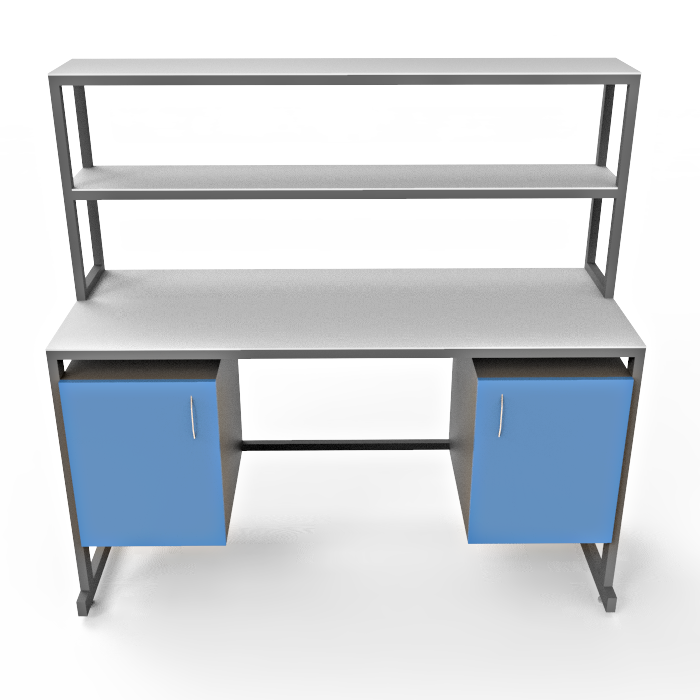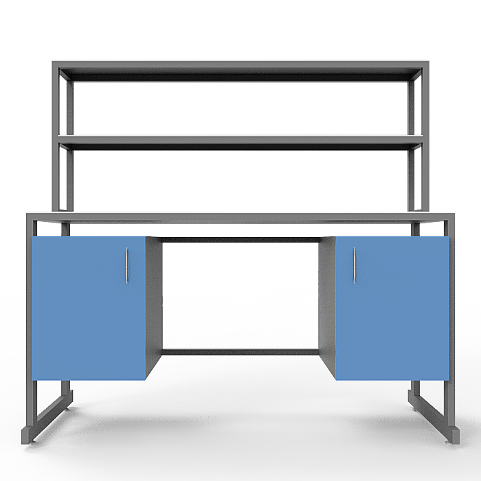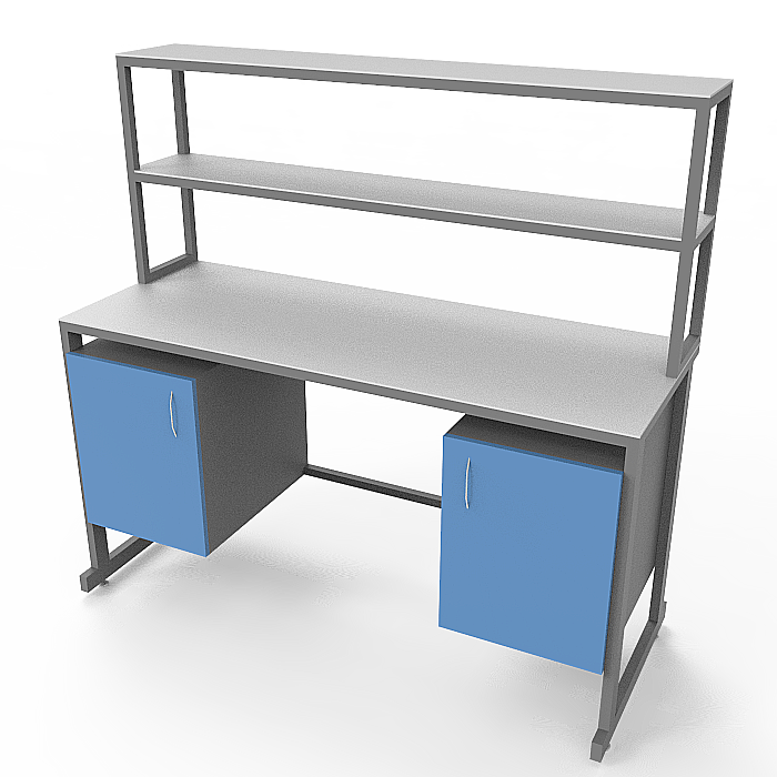Модель СЛк 21.011 комплектуется удобной надстройкой с двумя полками, 2 тумбами под столешницей, каждая с распашной дверцей, что позволяет удобно хранить необходимые материалы и оборудование прямо на рабочем месте. Регулируемые по высоте ножки с винтовыми опорами обеспечивают стабильность стола на различных поверхностях и позволяют настроить оптимальную высоту для максимального комфорта во время работы.