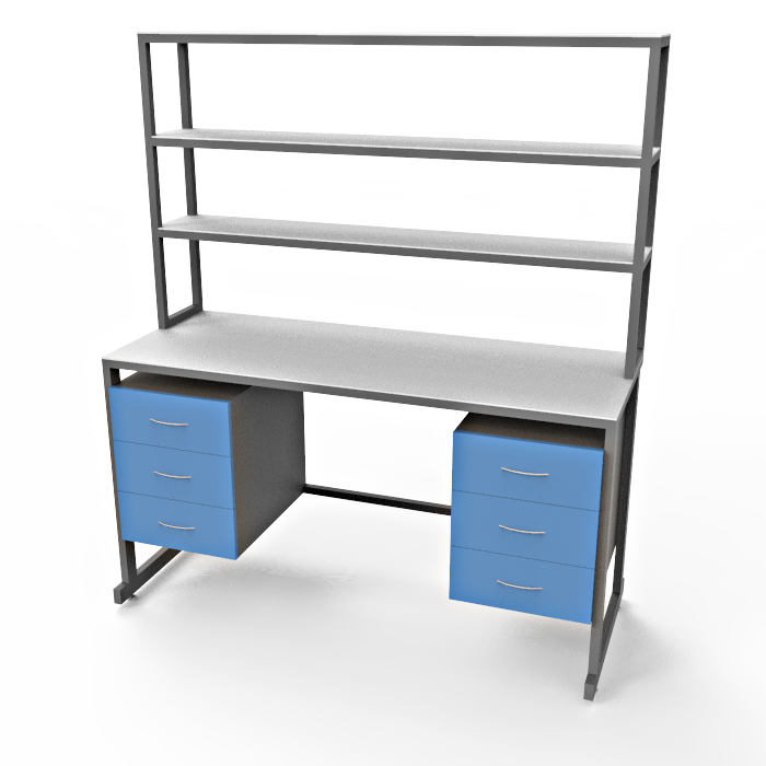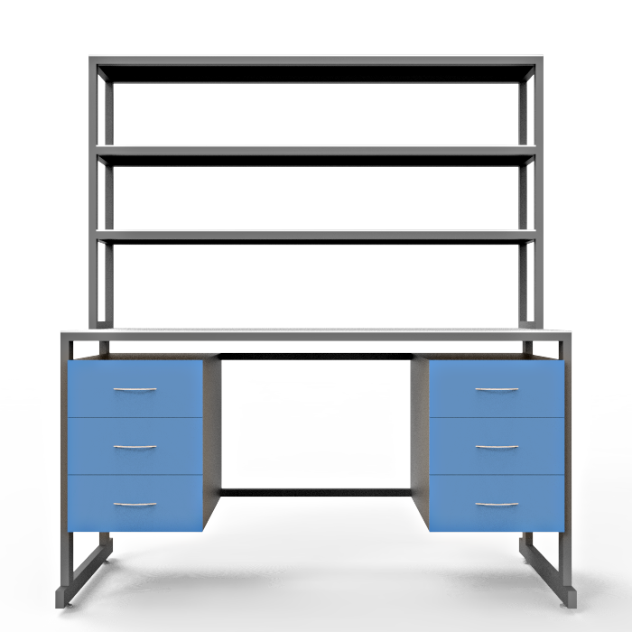 Модель СЛк 21.018 оснащена удобной надстройкой, включающей три полки и две тумбы под столешницей с тремя выдвижными ящиками каждая. Это обеспечивает удобное распределение рабочего пространства и удобное хранение необходимых материалов и оборудования. Регулируемые по высоте ножки с винтовыми опорами позволяют установить стол на неровных поверхностях и обеспечивают его стабильность во время работы.