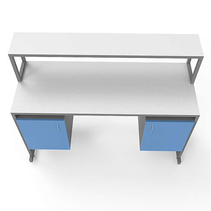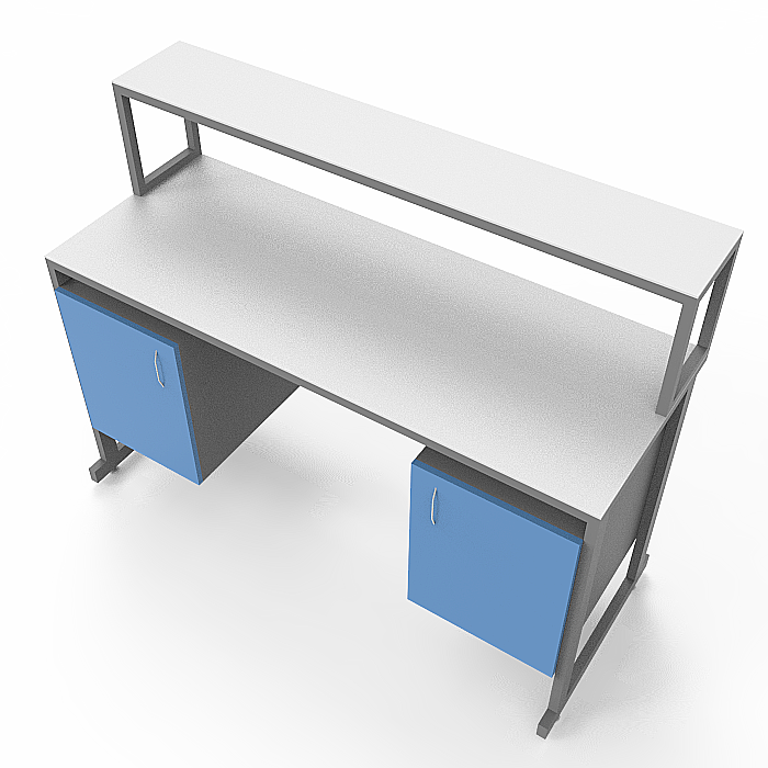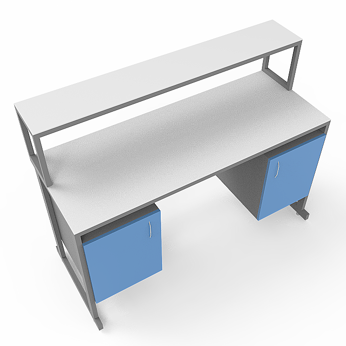 Модель СЛк 21.004 оснащена удобной надстройкой с полкой, а также двумя тумбами, каждая из которых оснащена дверцей и позволяет удобно хранить необходимые материалы и оборудование. Регулируемые по высоте ножки с винтовыми опорами обеспечивают стабильность стола даже на неровных поверхностях, что позволяет комфортно работать.