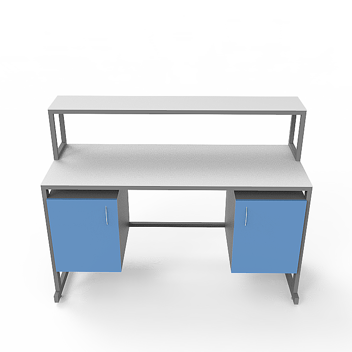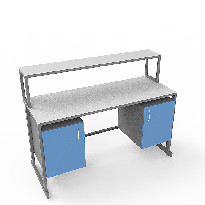 Модель СЛк 21.005 оснащена практичной надстройкой с полкой, а также двумя тумбами под столешницей: одна из них с дверцей для удобного хранения материалов, а вторая с тремя выдвижными ящиками для удобной организации инструментов и оборудования. Регулируемые по высоте ножки с винтовыми опорами позволяют установить стол на неровных поверхностях, обеспечивая стабильность и удобство в использовании.