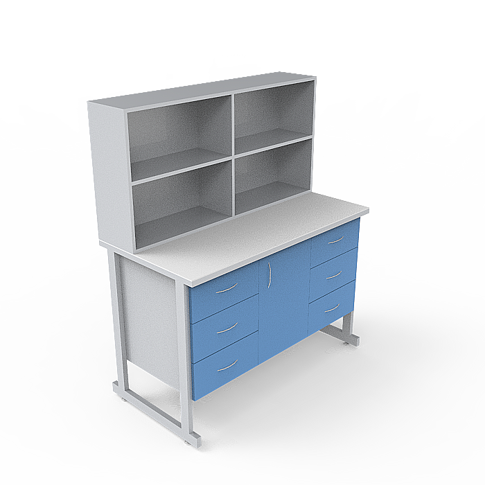 Стол-тумба лабораторная СТл 18.011 с надстройкой сочетает в себе высокое качество материалов, продуманный дизайн и функциональность, делая его идеальным выбором для организации эффективного и удобного рабочего пространства в лабораторном окружении.