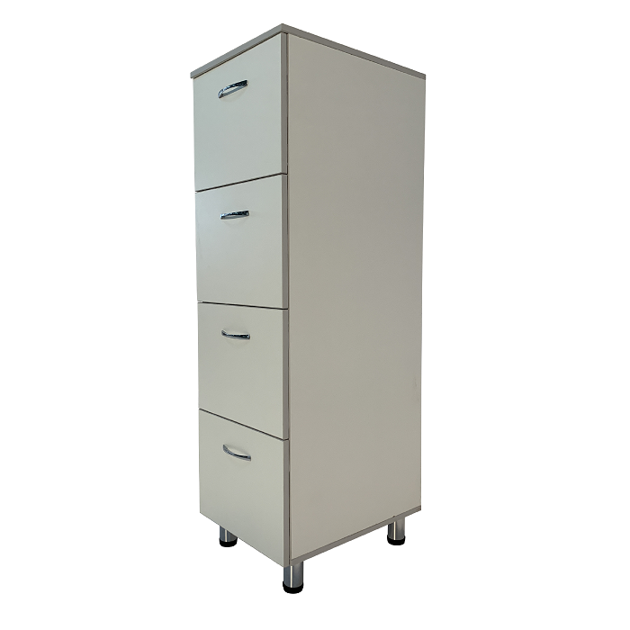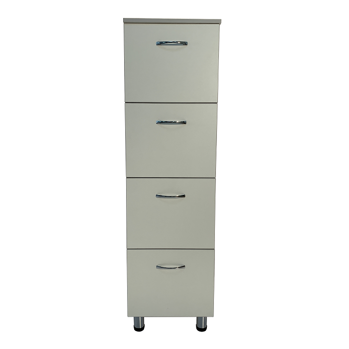 Шкаф оснащен выдвижными ящиками, которые обеспечивают легкий доступ к документам и удобную систематизацию. Высота ножек шкафа регулируется при помощи винтовых опор, что позволяет устанавливать его даже на неровной поверхности, обеспечивая стабильность и удобство в использовании.