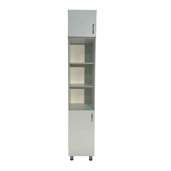 Корпус шкафа изготовлен из прочного и надежного ЛДСП, обеспечивая долгий срок службы. Модель оснащена полками для удобного хранения и организации документов, а также дверцами на антресолях и в нижней части шкафа, что обеспечивает легкий доступ к содержимому. Регулируемые по высоте ножки позволяют устанавливать шкаф на различных поверхностях, что делает его универсальным в использовании. Ниша шкафа разделена на отделения, что помогает эффективно организовать хранение и быстро находить необходимые материалы.