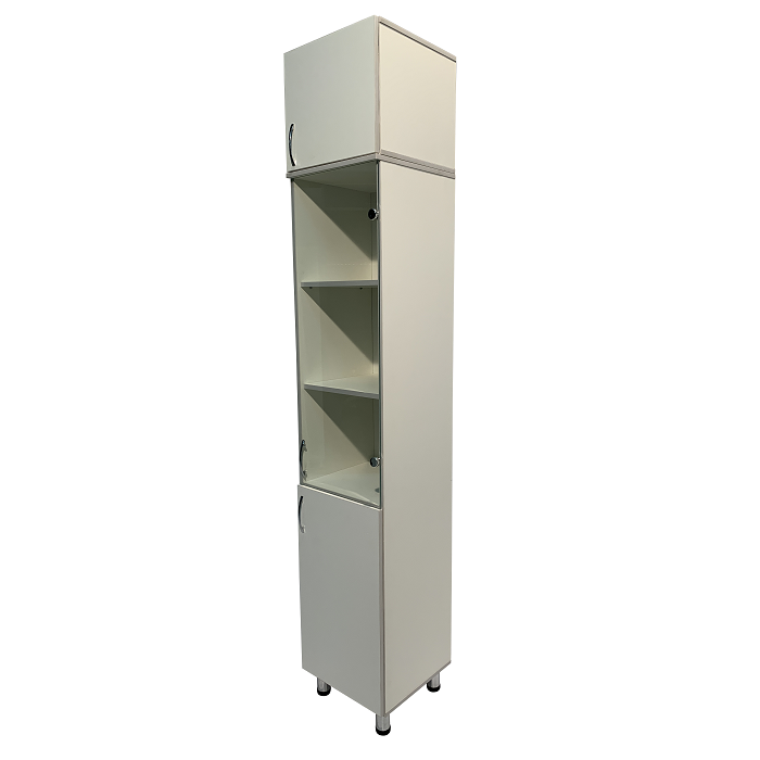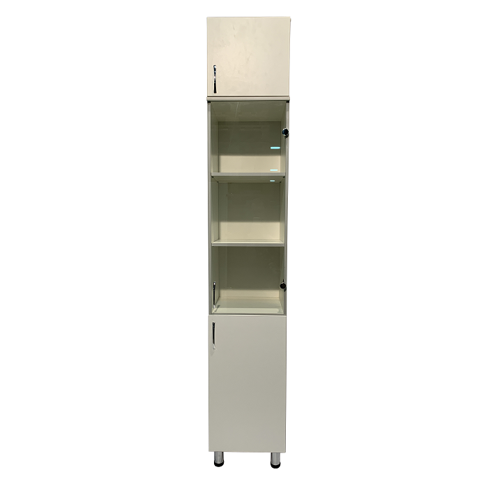 Медицинский шкаф MD ШМ 14.04 представлен в классическом белом цвете, нейтральном и универсальном для любого интерьера. Толщина используемого ЛДСП составляет 16 мм, обеспечивая прочность и долговечность.