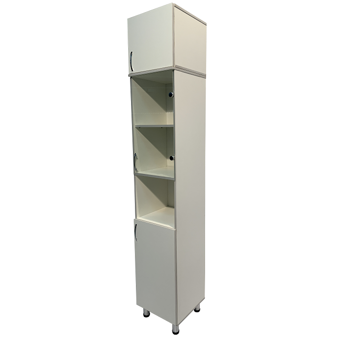 Ключевые особенности модели включают в себя вместительность при компактных размерах, что позволяет оптимизировать пространство помещения, возможность регулировки высоты ножек с помощью винтовых опор для обеспечения стабильной установки шкафа, а также использование средней дверцы из стекла, что не только обеспечивает стильный внешний вид, но и позволяет визуально оценить содержимое шкафа.