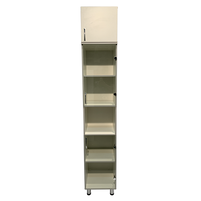 Шкаф выполнен из ЛДСП толщиной 16 мм, что обеспечивает прочность и долговечность конструкции. Использование стеклянных дверей позволяет визуально оценить содержимое шкафа и добавляет стильный акцент к дизайну. Тщательно продуманный дизайн и высокое качество материалов делают этот шкаф идеальным решением для медицинских учреждений.