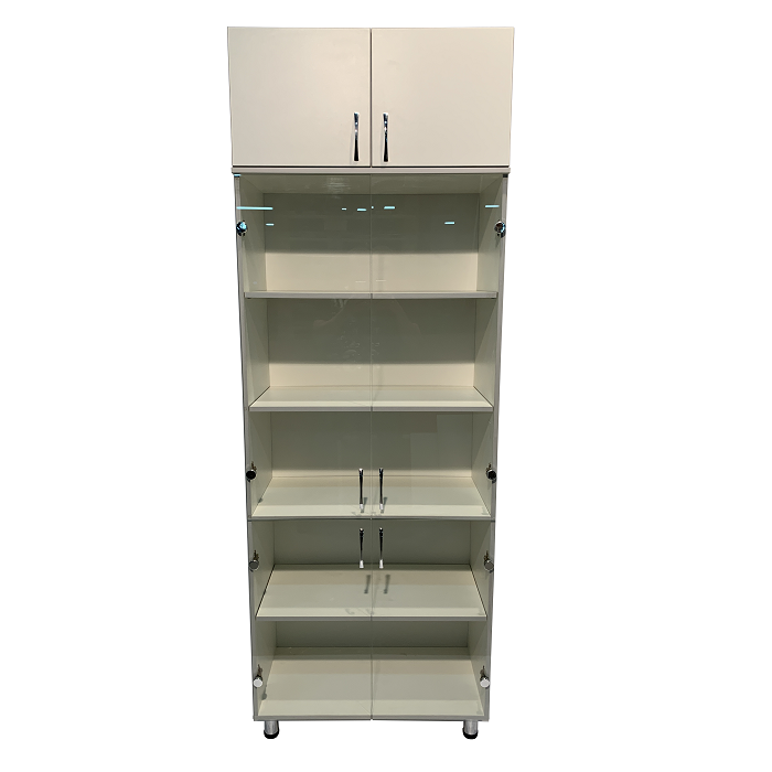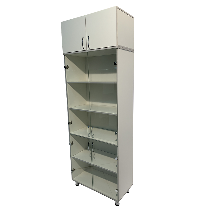 Изготовленный из ЛДСП высокого качества, средние и нижние дверцы которого выполнены из стекла, шкаф MD ШМ 14.36 не только обеспечивает надежное хранение документов, но и придает интерьеру медицинского учреждения стильный и современный вид.