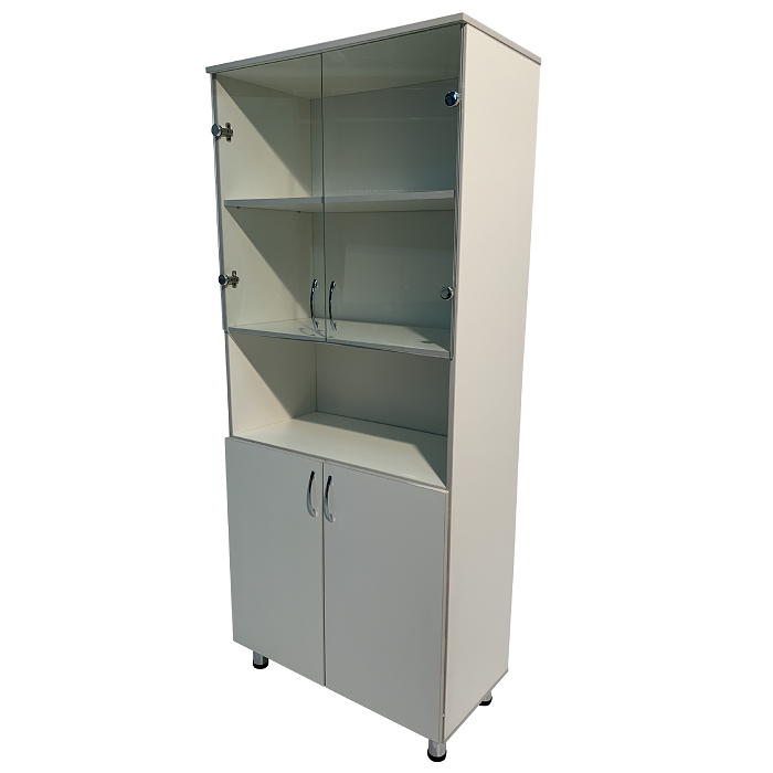 Шкаф MD ШМ 14.45 оснащен полками, дверцами и регулируемыми по высоте ножками, что обеспечивает легкий доступ к документации и позволяет адаптировать его под конкретные требования помещения. Выполненный из ЛДСП, а верхние дверцы из стекла, он сочетает в себе прочность и стильный внешний вид.